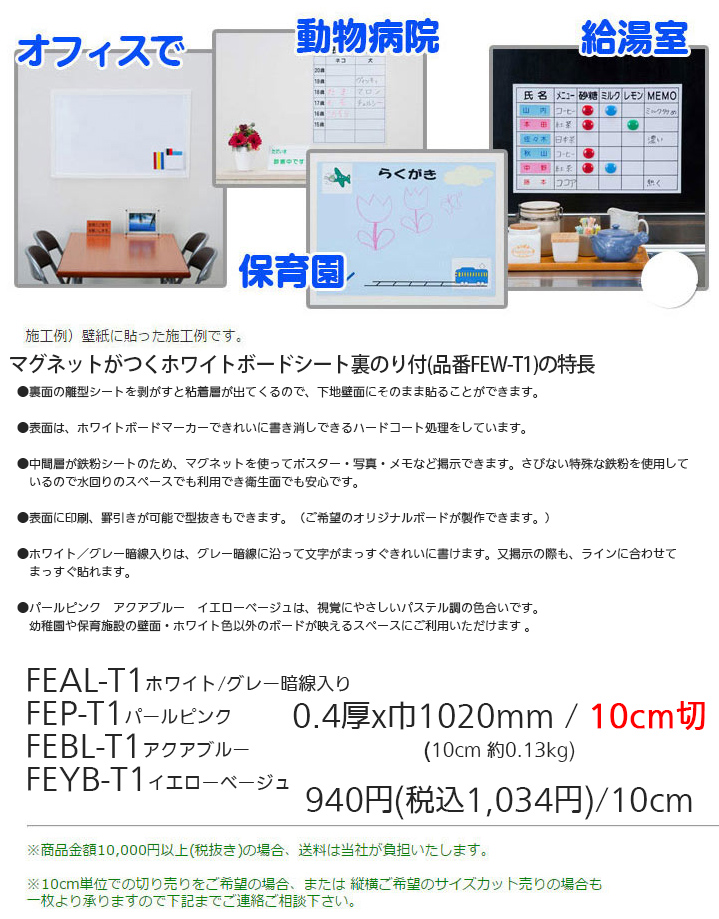 上から下に貼るので貼りやすい ● ジョイントは突き付けになります。