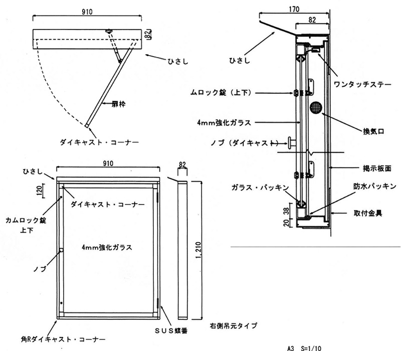 片開き屋外掲示板(壁付型) シルバー枠 ・HUS-32SW(910x610x82) ・HUS-34SW(1210×910) 片開き屋外掲示板(壁付型) ブロンズ枠 ・HUS-32BW(910x610x82) ・HUS-34BW(1210×910) 板面のカラーとサイズを選択し、ご購入ください